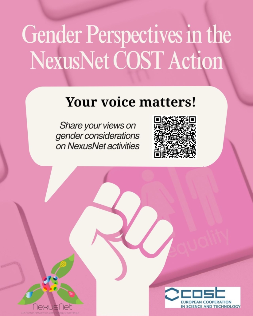 A key component was the development and implementation of a survey to assess the integration of the gender dimension into NEXUSNet activities. This survey, promoted via a QR code, poster, and social media channels, engaged the network in self-assessment. The evaluation of the survey results provided valuable insights into the impact of these campaigns. It highlighted areas for future improvement, culminating in a final report that summarised the activities, key findings, and an impact assessment.