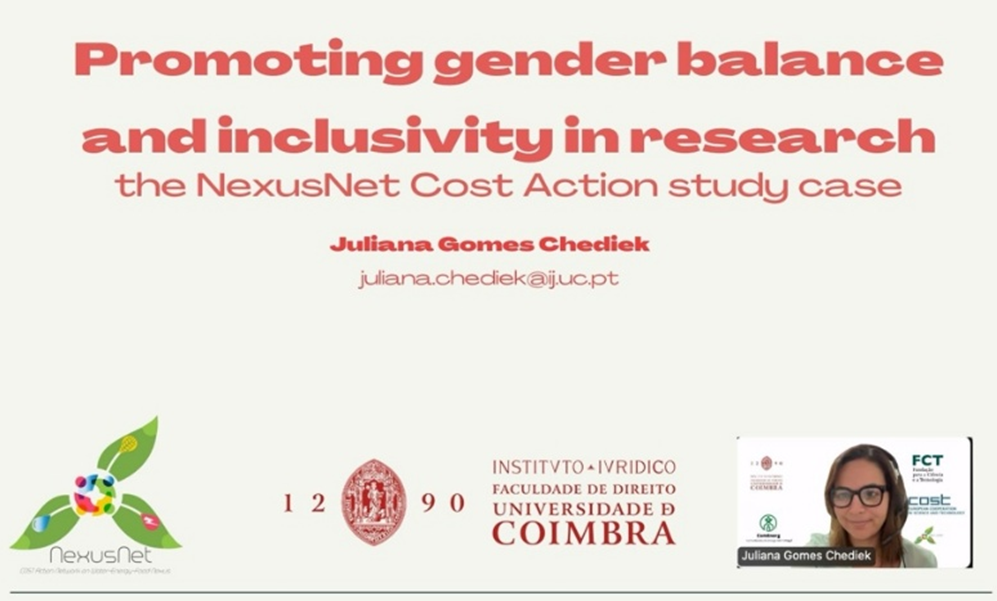 NEXUSNet Cost Action recognises that a truly robust and impactful research ecosystem must actively incorporate a gender perspective to move beyond mere numerical representation to a deeper understanding of how biological and social factors associated with gender influence research questions, methods and outcomes. NEXUSNet has implemented a multi-faceted approach to address these challenges and promote a more equitable research environment. These efforts have been systematically focused not only on identifying inequalities but also on actively implementing solutions to address them.